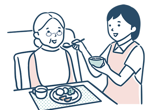 清潔のケア(清拭・入浴介助・口腔清拭など)、食事のケア(胃ろうの注入・栄養相談など)、排泄のケア(浣腸・摘便など)